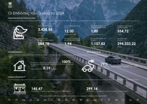 Για πρώτη φορά, ο Όμιλος προχώρησε στον υπολογισμό των έμμεσων εκπομπών του Scope 3, επιδιώκοντας μια ολιστική κατανόηση του ανθρακικού του αποτυπώματος σε ολόκληρη την αλυσίδα αξίας. Παράλληλα, η δέσμευση για κυκλική οικονομία ενισχύεται με την ανάκτηση και ανακύκλωση 145,47 τόνων επικίνδυνων και 299,14 τόνων μη επικίνδυνων αποβλήτων.