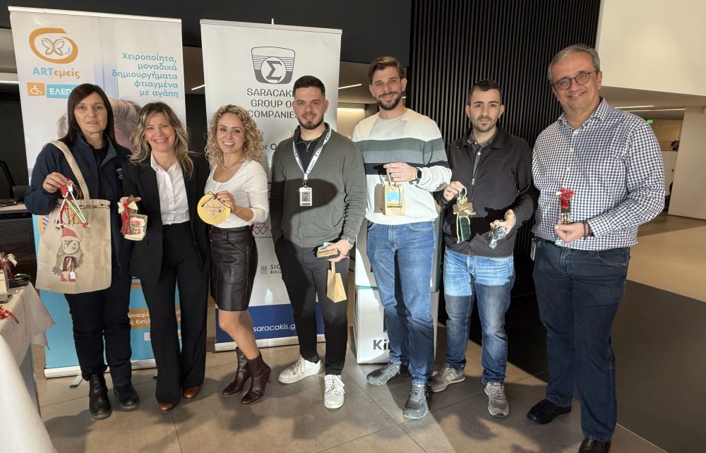 Η καθιερωμένη Χριστουγεννιάτικη γιορτή των εργαζομένων του συνδυάστηκε με ένα Χριστουγεννιάτικο Bazaar σε συνεργασία με την Ελληνική Εταιρεία Προστασίας και Αποκαταστάσεως Αναπήρων Προσώπων, τη γνωστή σε όλους ΕΛΕΠΑΠ και την ARTεμείς, την Κοινωνική Συνεταιριστική Επιχείρηση ένταξης. Η μαζική ανταπόκριση των ανθρώπων του Ομίλου Επιχειρήσεων Σαρακάκη στο Christmas Bazaar της ΕΛΕΠΑΠ απέφερε το ποσό των 2.223€ το οποίο καλύπτει την πραγματοποίηση 111 θεραπειών αποκατάστασης στα Γενναία Παιδιά της ΕΛΕΠΑΠ τα οποία, καθημερινά δίνουν, μαζί με τις οικογένειές τους, μάχη με την αναπηρία.