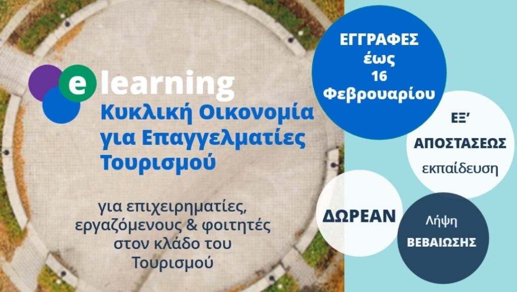 Δωρεάν εξ’ αποστάσεως εκπαίδευση για επαγγελματίες και στελέχη του κλάδου. Πώς η μετατροπή των αποβλήτων σε πόρους επανακαθορίζει το ελληνικό τουριστικό προϊόν.