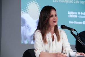 Η κ. Σκουζού έθεσε το πλαίσιο των δημόσιων διαβουλεύσεων του κόμματος, υπογραμμίζοντας ότι η πολιτική πρέπει να παράγεται μέσα από τη ζωντανή αλληλεπίδραση με τους πολίτες και τους ειδικούς.