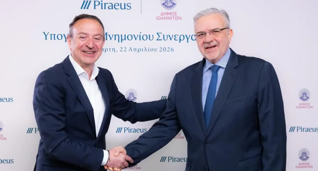 Η Πειραιώς και ο Δήμος Ιωαννιτών υπέγραψαν, σήμερα, Μνημόνιο Συνεργασίας για την από κοινού υλοποίηση δράσεων που προάγουν τη βιωσιμότητα, το περιβάλλον, τον πολιτισμό και την κοινωνική ενσωμάτωση στην πόλη των Ιωαννίνων. Το Μνημόνιο υπέγραψαν στην Αθήνα, ο Δήμαρχος Ιωαννιτών κ. Θωμάς Μπέγκας και ο Διευθύνων Σύμβουλος της Πειραιώς κ. Χρήστος Μεγάλου.